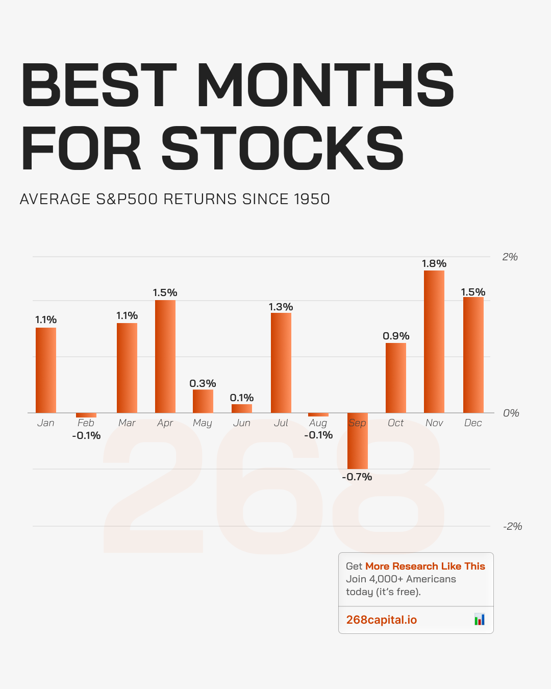 Meanwhile, weaker months include September (–0.72%), February (~0%), and August (~0%).