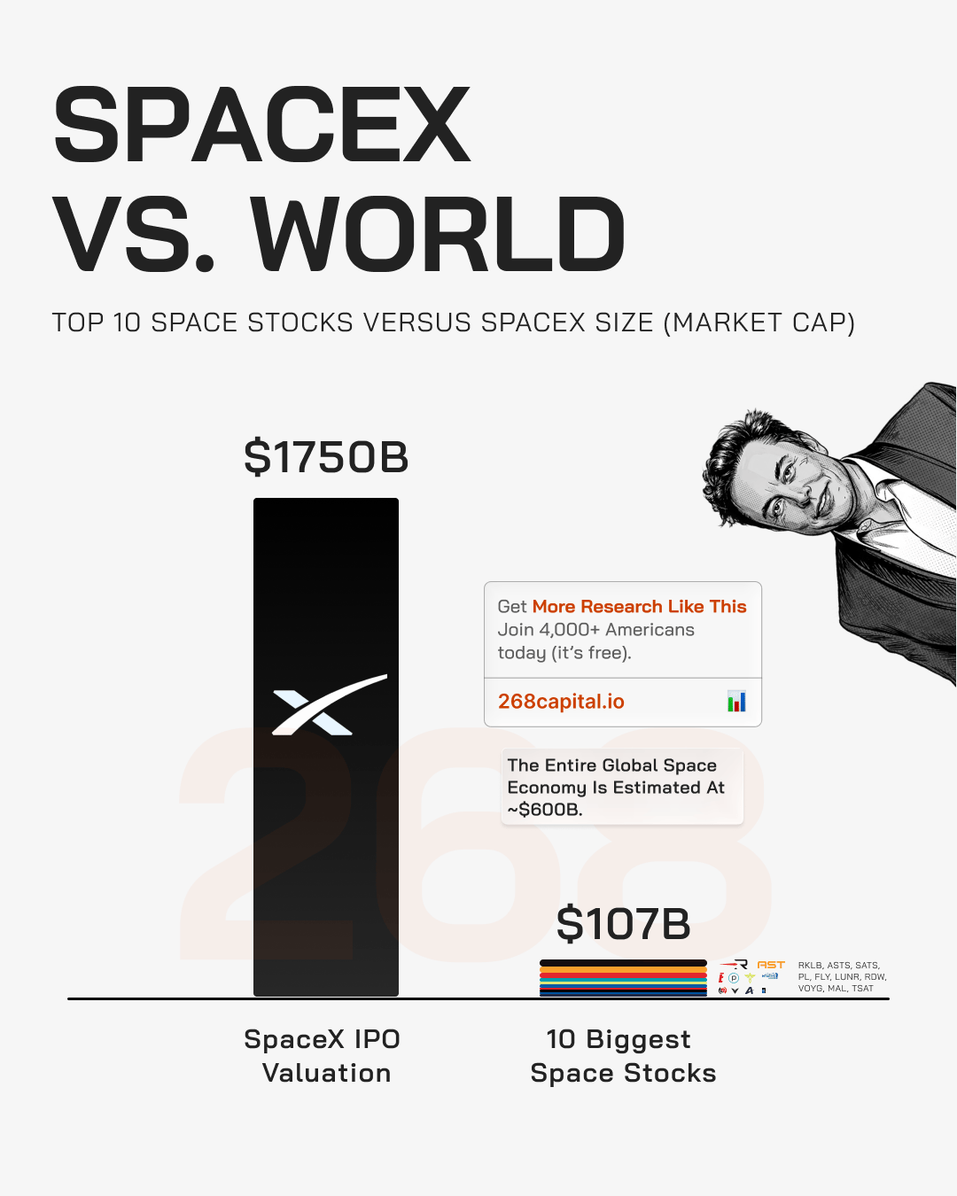 That means SpaceX alone would be worth more than 3x the size of the industry it operates in.