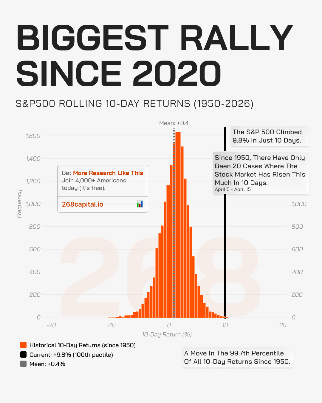 Since 1950, there have only been about 20 instances where the market jumped this much in such a short period.
