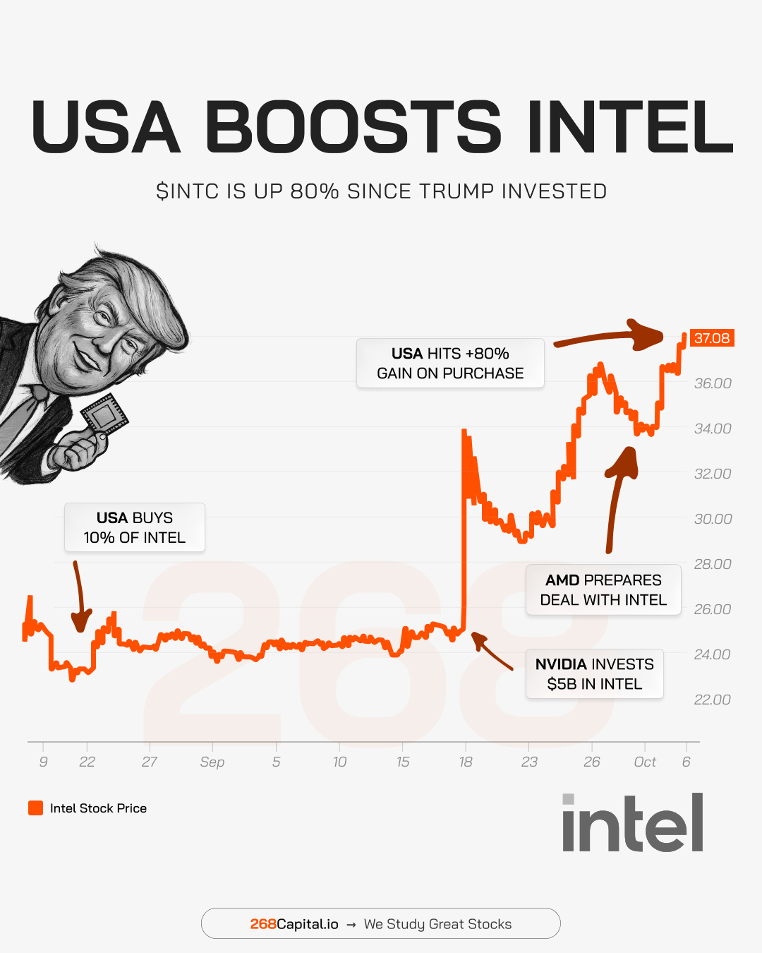 Intel’s stock has surged nearly 80% since the U.S. government took a 10% stake—marking one of the largest state-backed investments in a major chipmaker in decades.